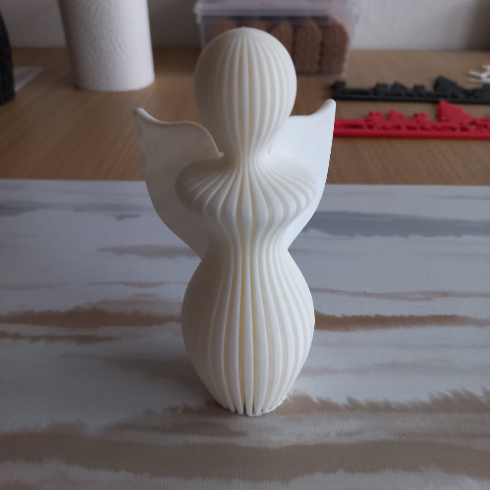 Gefertigt aus hochwertigem und nachhaltigem PLA-Material, ist dieser Engel sowohl leicht als auch stabil – perfekt geeignet als dekorativer Blickfang auf Ihrem Regal, Schreibtisch oder als Teil Ihrer weihnachtlichen Dekoration. Ob als Geschenk oder zur Verschönerung des eigenen Zuhauses – dieser Engel wird mit Sicherheit bewundernde Blicke auf sich ziehen.